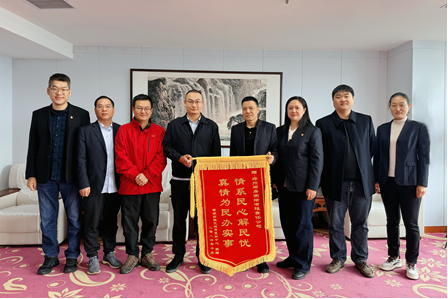 圖為鄭州鄭房測繪有限責(zé)任公司為群眾辦實(shí)事,群眾代表贈(zèng)予錦旗贊揚(yáng)。