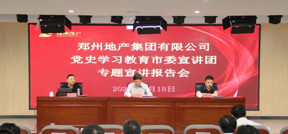 為持續(xù)推進(jìn)黨史學(xué)習(xí)教育走深走實(shí),5月18日上午,鄭州市委宣講團(tuán)走進(jìn)鄭州地產(chǎn)集團(tuán),在集團(tuán)301多功能廳開(kāi)展黨史學(xué)習(xí)教育專(zhuān)題宣講報(bào)告會(huì)。報(bào)告會(huì)由鄭州市委宣講團(tuán)成員、鄭州工程技術(shù)學(xué)院馬克思主義學(xué)院副教授張豪主講,市國(guó)資黨史學(xué)習(xí)教育第二巡回指導(dǎo)組組長(zhǎng)、四級(jí)調(diào)研員段德強(qiáng),指導(dǎo)組成員張?jiān)娪辍㈥愊殪车綍?huì)巡聽(tīng)旁聽(tīng),地產(chǎn)集團(tuán)領(lǐng)導(dǎo)班子、總部全體員工,各子公司支部書(shū)記、黨建部門(mén)負(fù)責(zé)人等共計(jì)150余人參加現(xiàn)場(chǎng)報(bào)告會(huì),各子公司員工共計(jì)170余人通過(guò)線上直播進(jìn)行觀看,會(huì)議由地產(chǎn)集團(tuán)黨委書(shū)記、董事長(zhǎng)萬(wàn)永生主持。