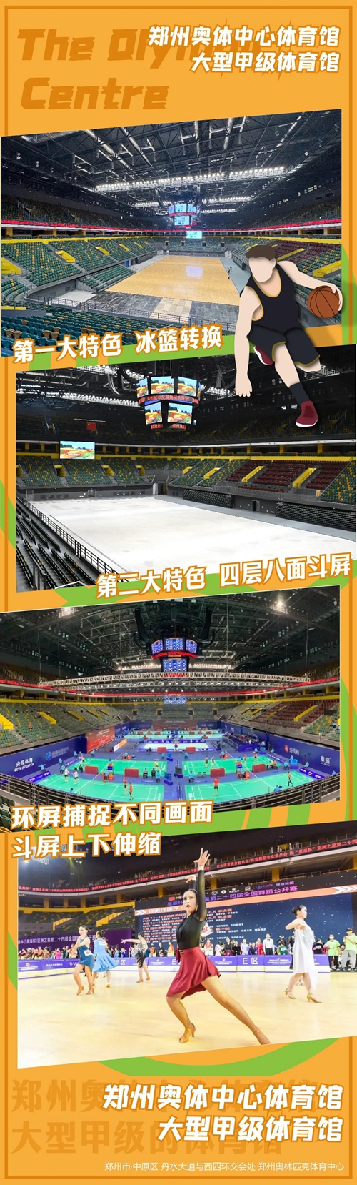 奧體中心體育館作為大型甲級體育館,空間使用靈活,場地利用率高。目前已經(jīng)舉辦了2019年世界乒聯(lián)巡回賽總決賽、2020年世界乒聯(lián)巡回賽總決賽、2019年全國羽毛球單項冠軍賽、2021年全國羽毛球冠軍賽暨第十四屆全運會羽毛球項目資格賽、2022年河南省第一屆職業(yè)技能大賽、2023永慶安瀾德云社岳云鵬·孫越相聲專場等知名賽事活動。下半年,將有更多知名演藝、賽事活動在奧體中心體育館舉辦。主館西側(cè)為總面積約2100平方米的籃球熱身館,目前已經(jīng)舉辦過籃球、跆拳道、羽毛球等體育賽事,以及企業(yè)展銷、社區(qū)聯(lián)誼、動漫展等活動;北側(cè)為冰上運動中心,擁有1800平方米國際標(biāo)準(zhǔn)冰,致力于為中部地區(qū)提供從啟蒙到精英級的系統(tǒng)化冰上運動培訓(xùn)。