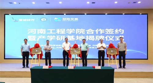 會上,河南工程學(xué)院、管城經(jīng)濟技術(shù)開發(fā)區(qū)管理委員會、河南鄭地產(chǎn)城融合建設(shè)發(fā)展有限公司共同簽署產(chǎn)學(xué)研合作協(xié)議,并現(xiàn)場為河南工程學(xué)院校外實習(xí)基地、產(chǎn)學(xué)研合作基地、就業(yè)基地揭牌。