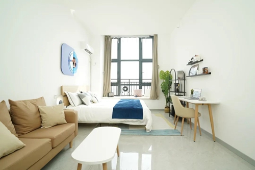 在王宇計(jì)劃租住的公寓內(nèi),不僅配備了智能門鎖、獨(dú)立衛(wèi)浴、床、衣柜、洗衣機(jī)、空調(diào)、冰箱,小到晾衣架也準(zhǔn)備了好幾個(gè),“家電配套都是全新的,而且租金比市場價(jià)更低。”