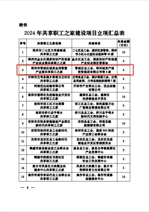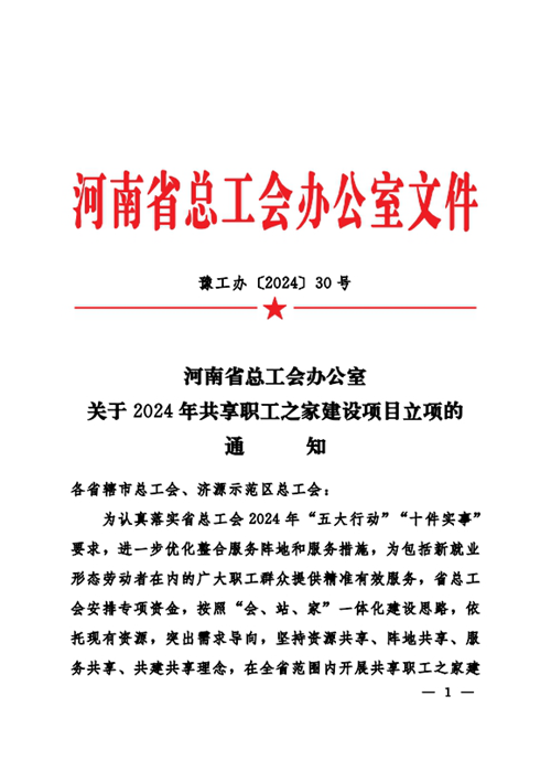近日,河南省總工會發(fā)布《關(guān)于2024年共享職工之家建設(shè)項目立項的通知》,決定對城發(fā)金岱智慧產(chǎn)業(yè)園共享職工之家等32個共享職工之家建設(shè)項目進(jìn)行立項,并對城發(fā)金岱智慧產(chǎn)業(yè)園共享職工之家給予資金補(bǔ)助,鄭州市僅有三家職工之家獲得立項,這是城發(fā)金岱智慧產(chǎn)業(yè)園共享職工之家建設(shè)運營后取得的第一份殊榮。