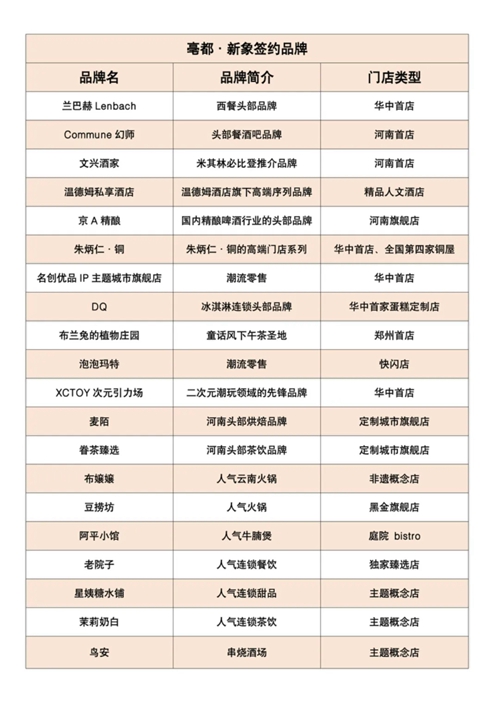 發(fā)布會上,蘭巴赫LENBACH華中首店、COMMUNE幻師河南首店、米其林必比登推薦的文興酒家河南首店、溫德姆私享酒店、京A精釀河南旗艦店、朱炳仁·銅全國第四座銅屋“中原銅屋”華中首店、名創(chuàng)優(yōu)品IP主題城市旗艦店華中首店、XCTOY次元引力場華中首店、DQ華中首家蛋糕定制門店、布蘭兔的植物莊園鄭州首店…等品牌確定進(jìn)駐項(xiàng)目,占比超30%的首進(jìn)品牌,讓亳都·新象成為鄭州首發(fā)經(jīng)濟(jì)的策源地之一。