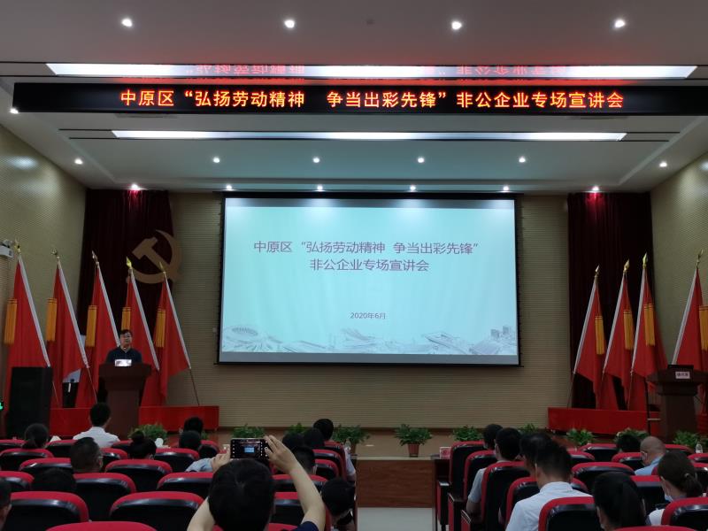 為充分發(fā)揮中原新區(qū)聯(lián)合黨委基層黨校在黨的理論教育上的主陣地作用和在黨性教育上的大熔爐作用,在黨校中弘揚(yáng)習(xí)近平總書記給圓方集團(tuán)職工的重要回信精神,真正使聯(lián)合黨委基層黨校成為黨員干部思想政治教育的紅色殿堂,6月5日和9日,中原區(qū)“弘揚(yáng)勞動精神 爭當(dāng)出彩先鋒”企業(yè)、班組專場及非公企業(yè)專場宣講會在中原新區(qū)聯(lián)合黨委基層黨校舉行,中原區(qū)委組織部組織科科長蔚光勛、西流湖公司副總經(jīng)理昌磊出席活動,共有來自中原區(qū)各街道辦事處、各企業(yè)的150余名黨員職工聆聽了宣講。